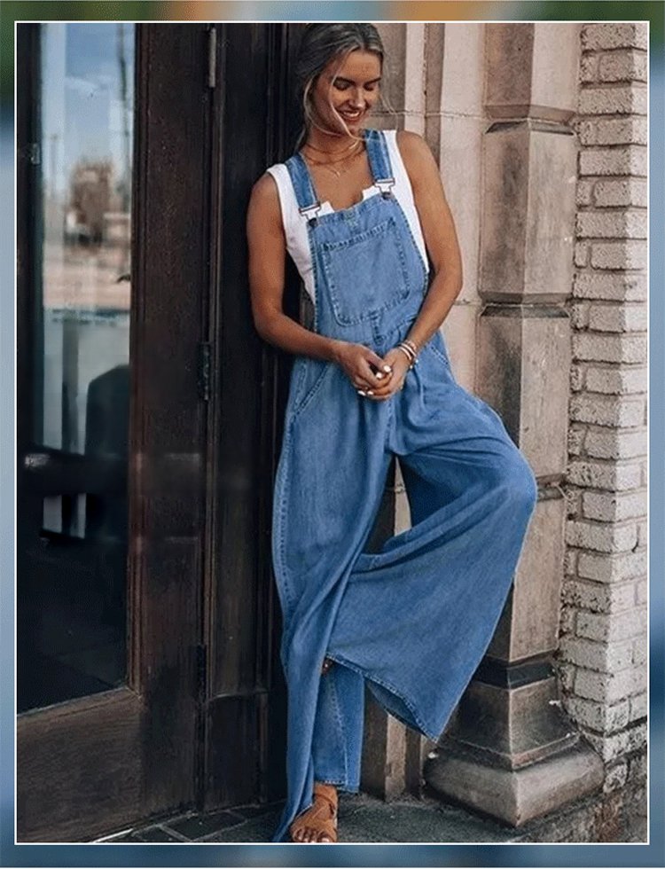 [Four colors available] Sleeveless Women's Denim Bib Pants